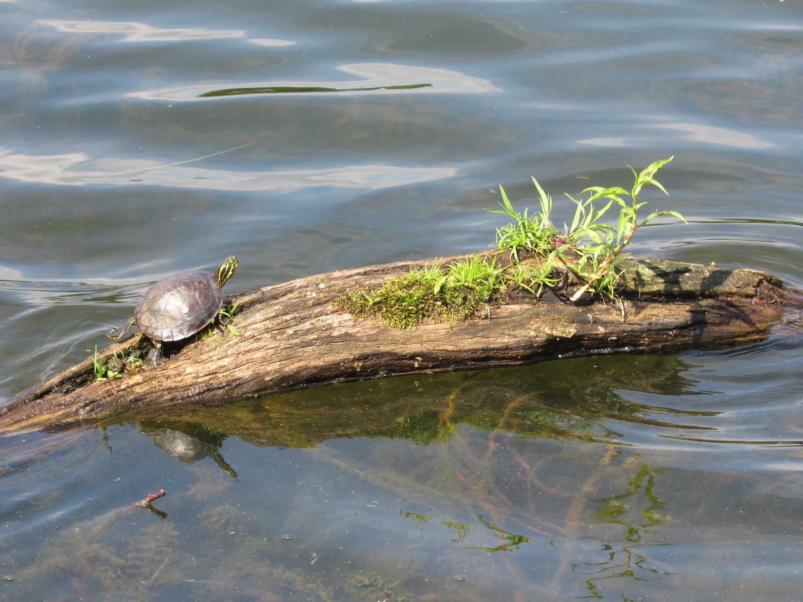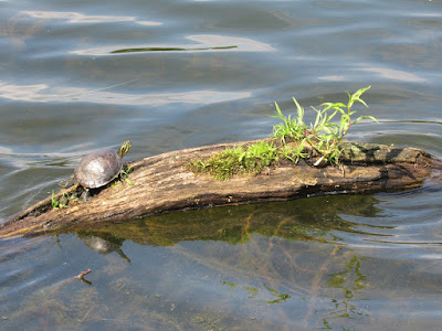 Cute turtles on logs.