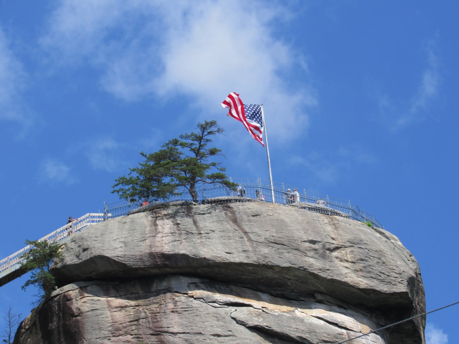When we climbed up onto the actual rock itself, there was a group of young people there, all wearing the same shirt. And they sang The Star Spangled Banner for us. Right there on the rock under the huge American flag. It was wonderful. Too bad Donald Trump is our friggin’ president. Kind of ruined the whole patriotic thing, frankly. But anyway, I tried to read their shirts and I think they were members of the American Heritage Youth Chorus. I asked them if they were at the Biltmore Estate the day before and it was them! I can’t say what they think of Donald Trump.