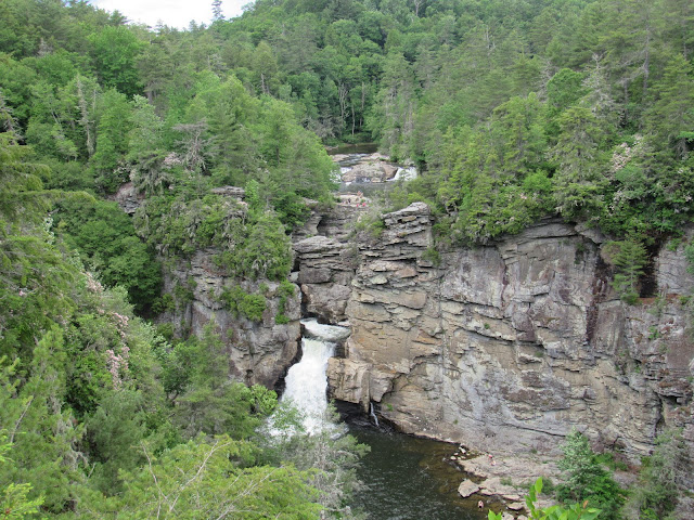 Then we went to Linville Falls. Just through the entrance, at the beginning of the trail, I saw what I thought was a big red berry on a tree at the river’s edge. It turned out to be a fishing lure.