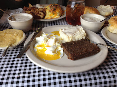 We ate at The Moose Cafe on our first morning there. It’s become a tradition to eat breakfast there whenever we visit. They have huge, buttery biscuits with their homemade apple butter. Excellent stuff. And I like to get scrapple, aka liver mush. A rare treat.