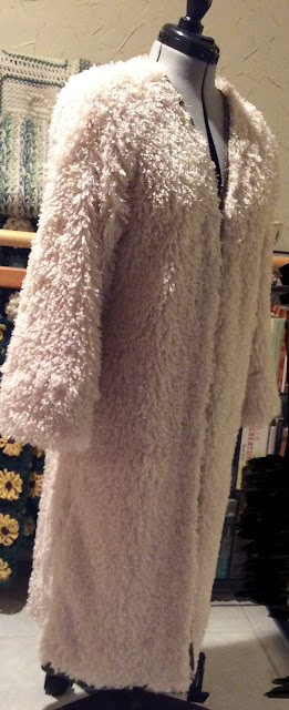 When Hancock Fabrics was going out of business, I shopped there regularly as the prices fell. I had my eye on this shaggy faux fur. Every week, I’d see it there on the faux fur table in all its shaggy glory.