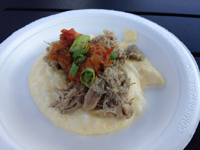 Anyway, the polenta was pretty good. Like cheesy grits. The salsa was bland. I guess I thought the “fire-roasted” part meant hot. But it was just tomato-y. And the duck could have been any pulled meat. Very mild.