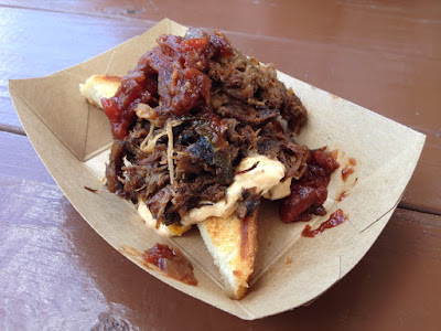 Smoked Beef Brisket and Pimento [sic] Cheese served on Griddled Garlic Toast $5.25 |