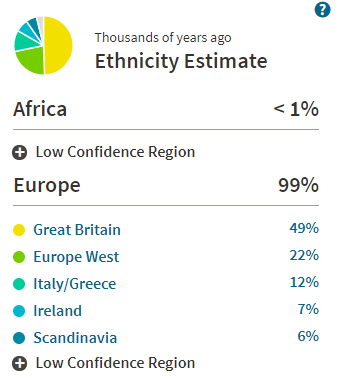 Wouldn’t you know it? I was able to tell her something without much research at all. I’d just had my Ancestry DNA results in! Here I am: