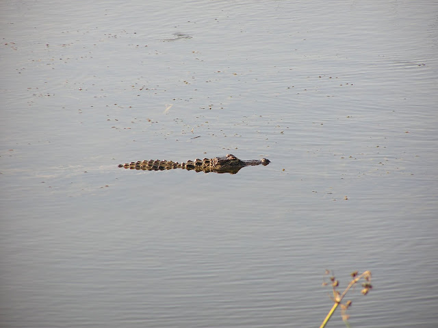 That being said, we saw a lot of very cool birds and I will post some of the pictures for you. We also saw a lot of alligators. A few of them were small, maybe three or four feet. But then we saw a large one that I say was six feet. Hubs says eight. And after that an even larger one! That was an eight-footer for sure. Of course you can’t tell how big they are without anything to compare them to. So, I walked right up next to them so you could—-just kidding!