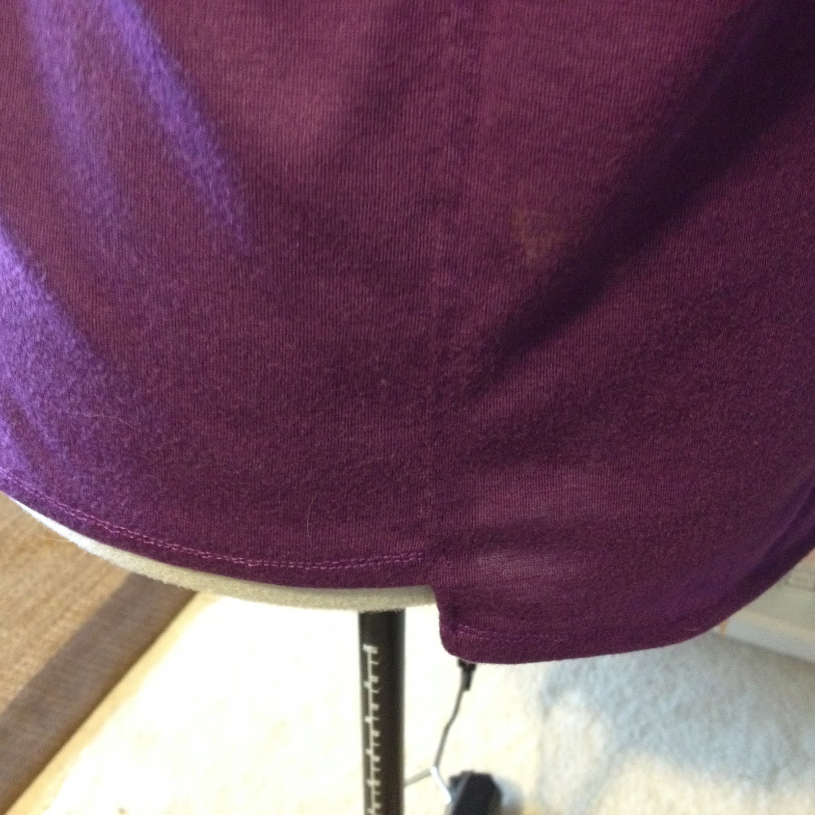 You can really see the difference in size. The neckline is much bigger than the pattern picture above, but that’s no doubt because I started with medium instead of small, and then folded the facing under. If I ever use that pattern again, I’ll start smaller.