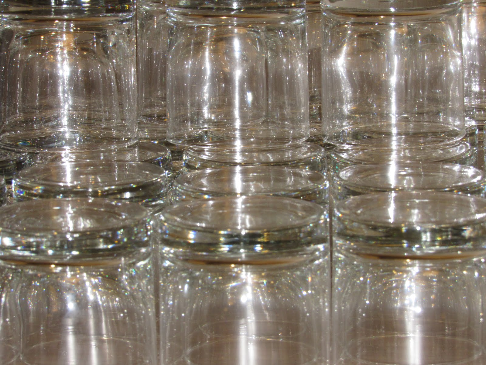 Stacked water glasses in the ballroom.