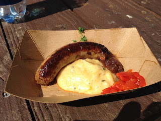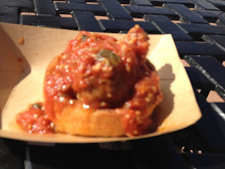 Can you say nom nom? Nom, nom! The sausage was spicy as all get out. Woot! And the creamy polenta was sweet. I tried to eat it all, but I was already starting to get full and I knew I had a lot more to sample. As to the Minus 8 onion jam. Didn’t like that at all. It made me shudder. What the heck was that? Apparently Minus 8 is a brand of vinegars. That explains it. Luckily, this “jam” was off to the side so I didn’t have to eat it.