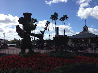 I tried to take this picture of the Mickey-as-a-chef shrubbery.