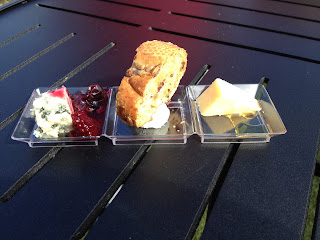 As it turned out, that particular morsel was part of a trio of artisan cheeses. From left to right: Rogue Creamery Oregon Blue Cheese with berry port compote, the aforementioned goat cheese with its impressive hunk of Craisin bread, and Karst cave-aged cheese served with honey.