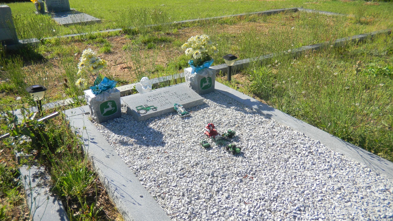 Try being two-year old Austin Lee McNeal, lying in the back corner, far from one of the two trees in a barren wasteland of deadness. Up against a back fence and a ramshackle trailer, home of dogs threatening anyone who dares to visit. You know how much your mommy loved you because she’s left toy trucks and a plastic dinosaur for you. But the angel at your feet has fallen and broken and no one’s come by recently to set it right.